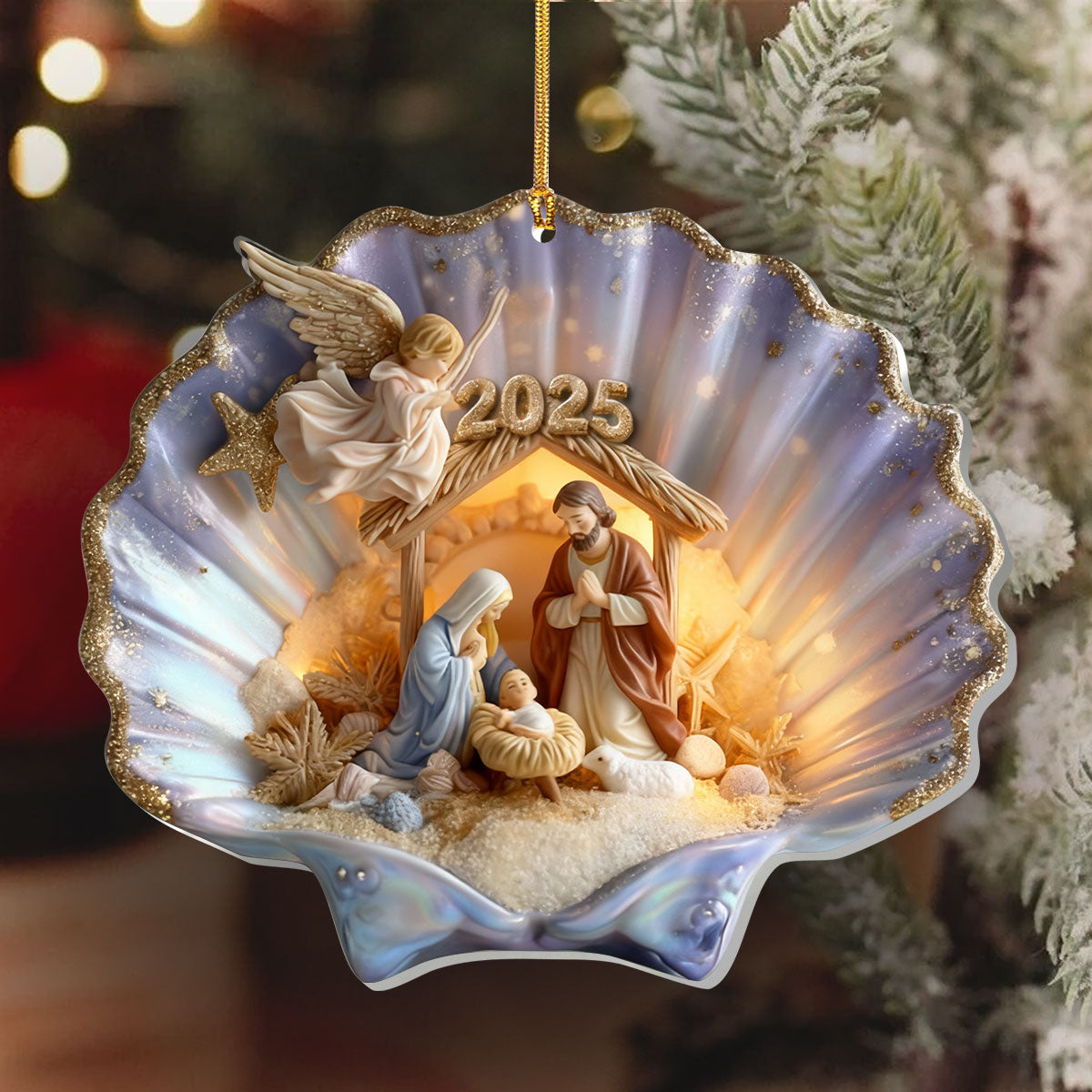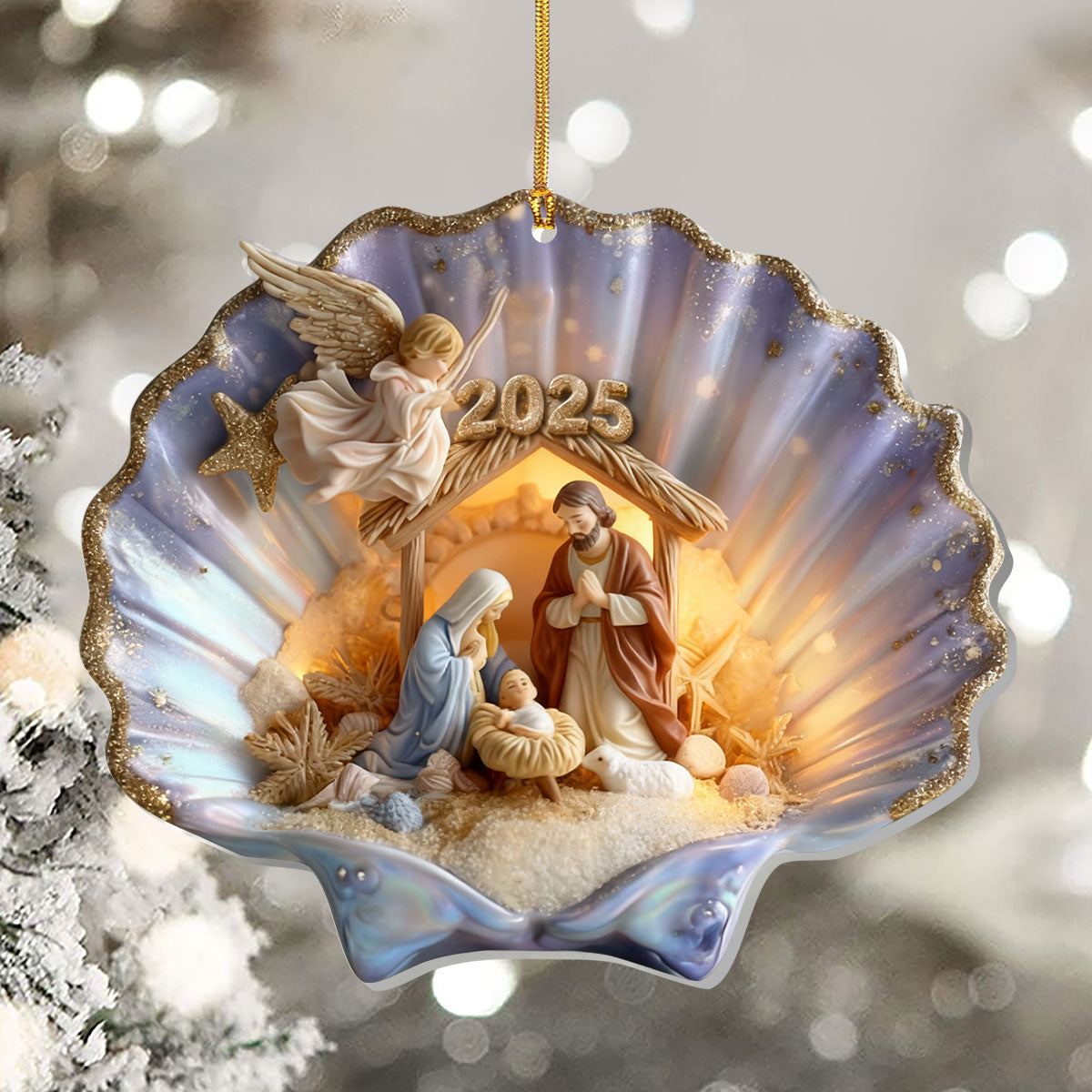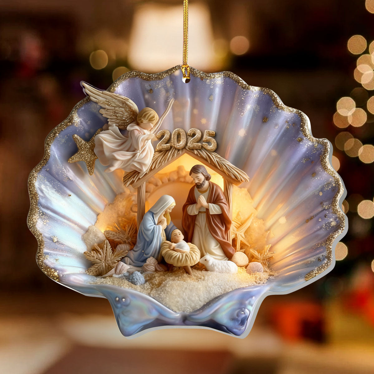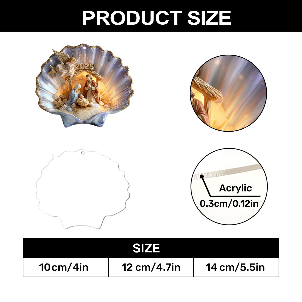 Celebrate the season with our Nativity In A Seashell ornament! This beautifully crafted 1-layer acrylic ornament features a serene nativity scene nestled within a seashell, combining holiday charm with a coastal twist.
